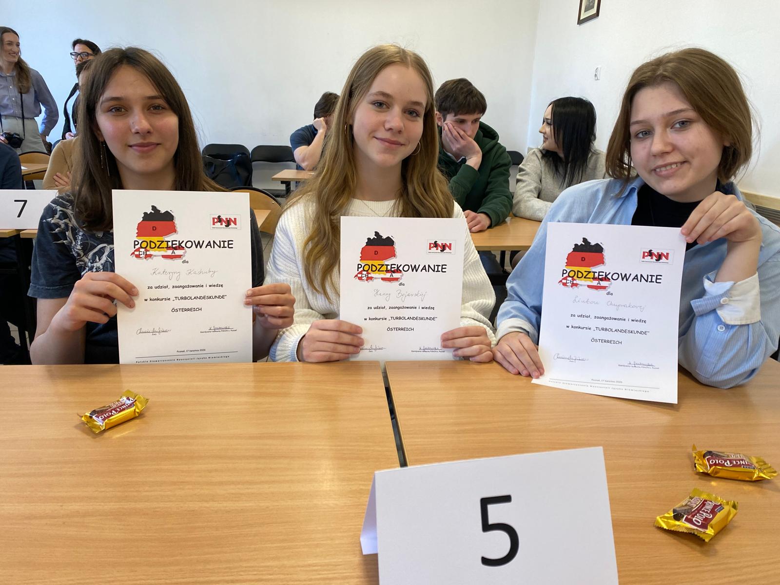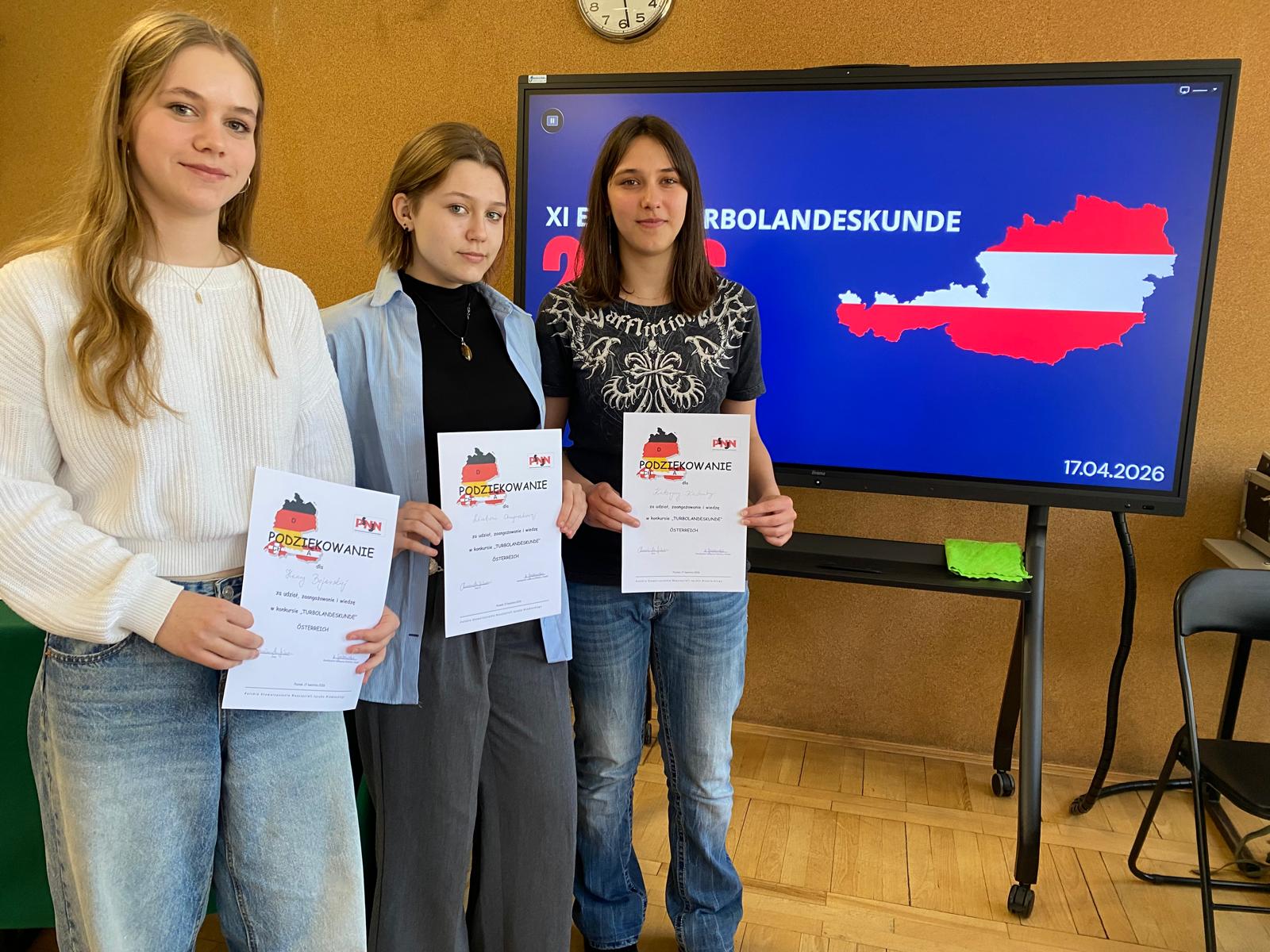 zajęły 3 miejsce w eliminacjach rejonowych w konkursie krajoznawczym TURBOLANDESKUNDE AUSTRIA. Pytania dotyczyły historii, geografii, polityki i szeroko zakrojonej kultury Austrii. Dziewczyny zajęły trzecie miejsce po emocjonującej dogrywce.